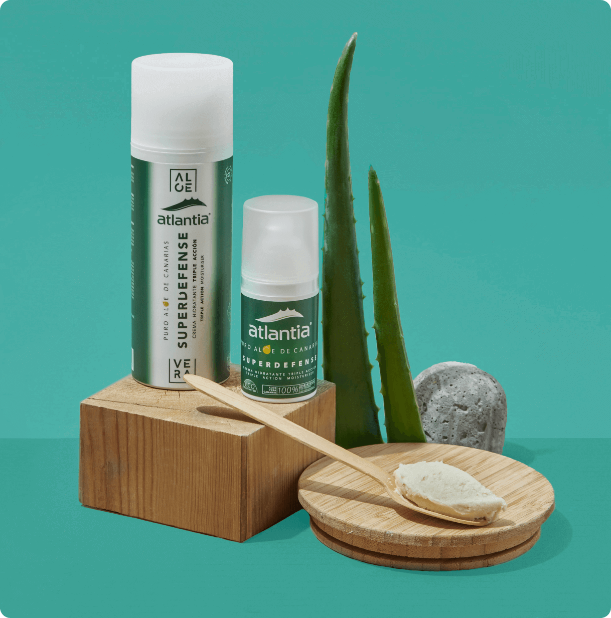 L’aloe vera est l’un des ingrédients les plus recherchés dans l’industrie cosmétique et les îles Canaries offrent des conditions uniques pour sa culture. Atlantia est née dans le but de mettre sur le marché une gamme de produits de santé et de beauté avec un pourcentage élevé d’aloe vera pur, stabilisé à froid. En combinant les propriétés exceptionnelles de la plante avec d’autres ingrédients naturels tels que le beurre de karité, l’huile d'avocat et la rose musquée, nous obtenons une ligne de produits dont l’efficacité est cliniquement prouvée.